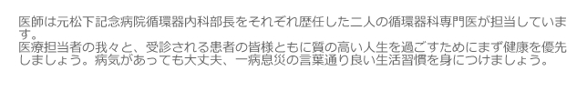 HOME | ごあいさつ | 診療案内 | 各医師の紹介 | よくある質問 高血圧で初めて受診される方へ |  地図・アクセス  |  リンク | データ送信 |